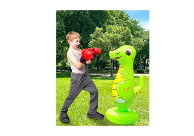 Include: DinoBoxing Bag x 1Glove x 1Pump x 1 Material: PVC, ABS, Silicone, PU, PE, Polyester Packaging: Printed Box Package Size: 195 x 97 x 410 mm 7.68 x 3.82 x 16.14 in