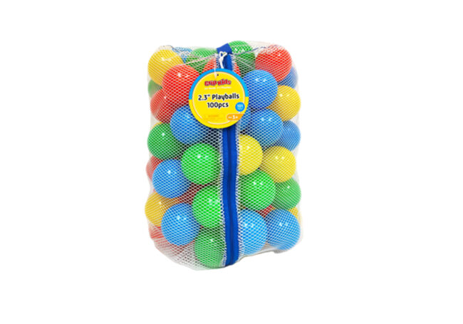 Include: Play ball x 100 Mesh Bag x 1 Material: PE Item Desc: Ball: Ø58 mm / 2.3 in Packaging: Mesh Bag + Hang Tag Selling Package Size: 450 x 300 x 190 mm 17.72 x 11.81 x 7.48 in Actual colors may vary.
